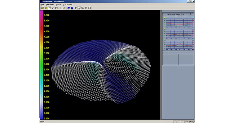 - Die Analysesoftware ist in der Lage die bearbeiteten Linsen mit einer theoretischen Abbildung zu vergleichen