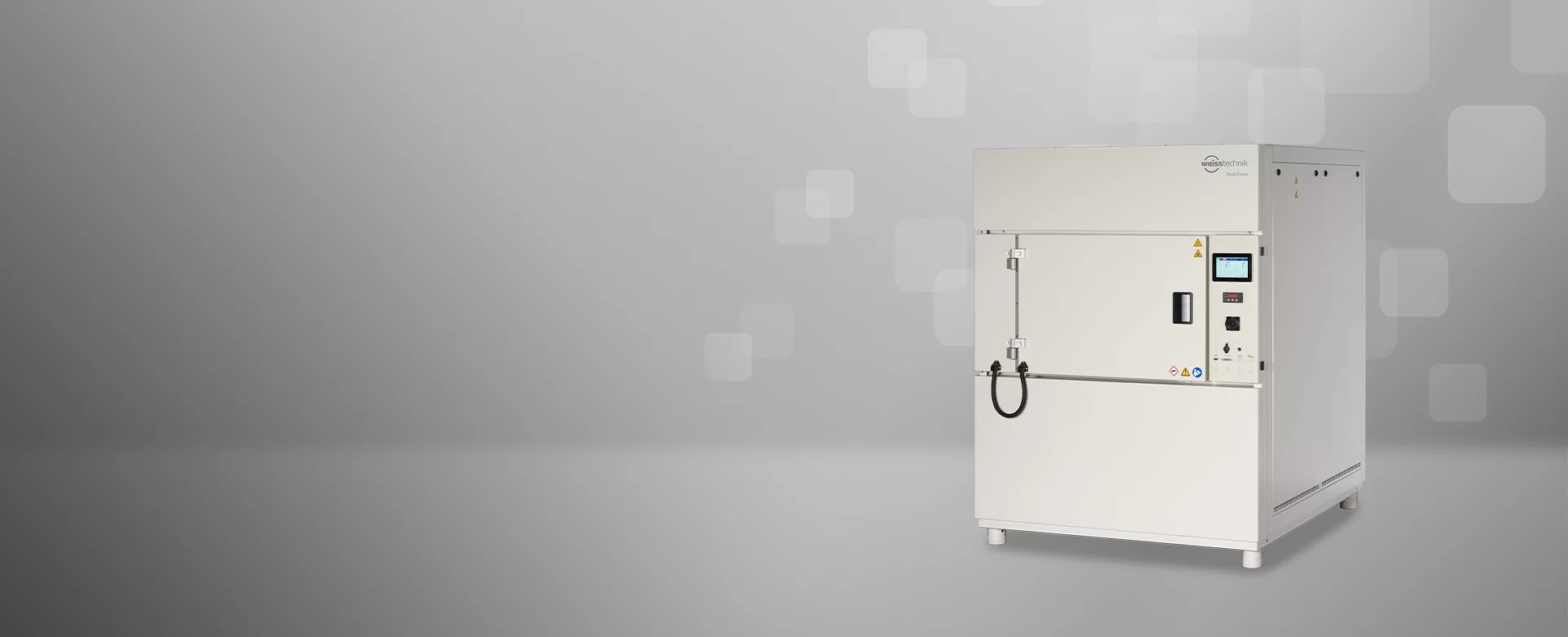 ShockEvent D damper-type shock test chambers with fixed test space are ideal for vibration-sensitive or active test objects such as sensors and other electronic components. During the thermal cycling test, temperature-controlled hot or cold air flows into the test chamber to the test specimen. This means that the test specimen remains stationary and does not have to be moved between several temperature chambers, as is the case with horizontal and vertical shock test chambers.